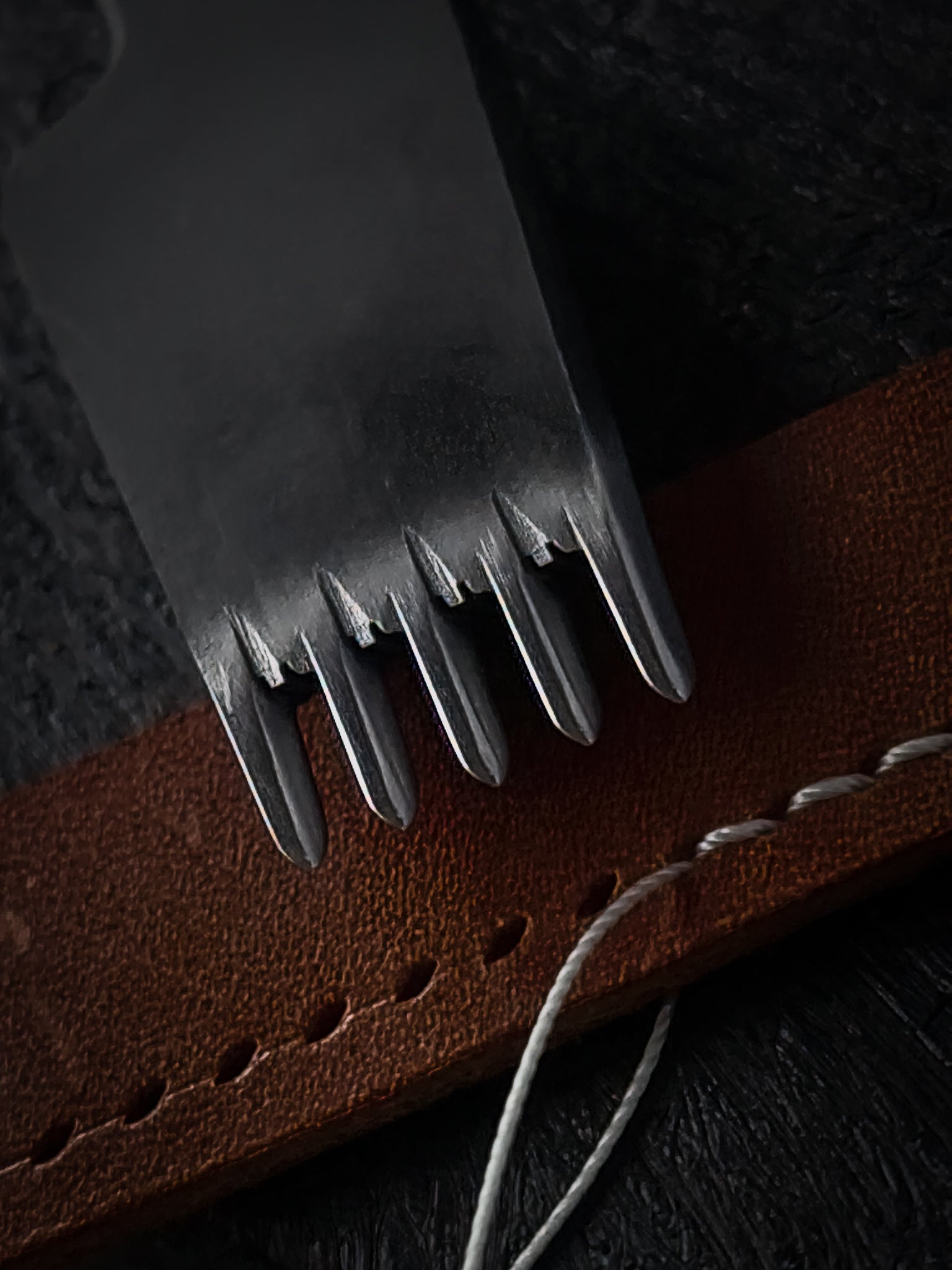 Made using DC53 steel. Comes sharpened with an antique finish for a firmer grip. Slim diamond shaped teeth creates smaller, refined holes.